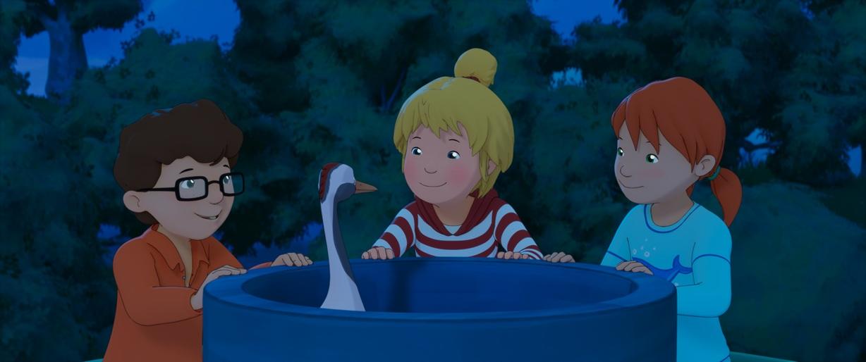 Po úspěšném televizním seriálu přichází Conni na filmové plátno v celovečerním snímku. Když jsou rodiče pryč, zažije Conni doma nečekané dobrodružství. Společně s dědečkem a kocourkem Mourkem pomáhá zraněnému jeřábovi Klausovi, který musí včas odletět na jih se stěhovavými ptáky.