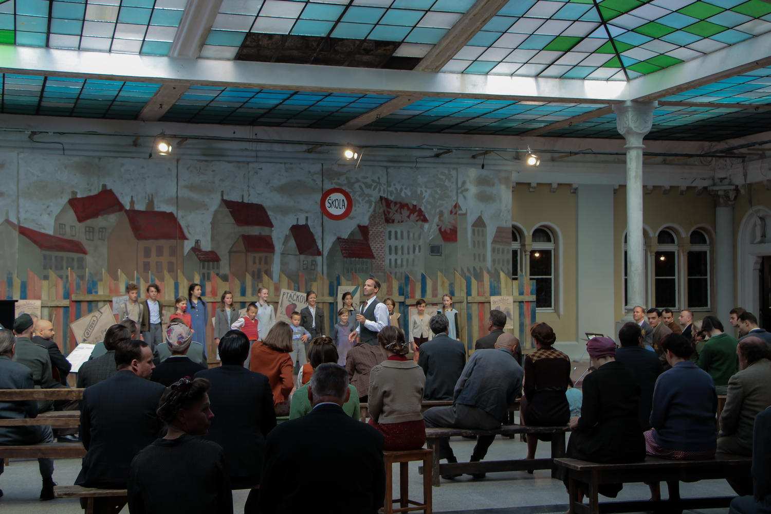 | Film Terezín: Láska za zdí zachycuje životní osudy fiktivních i reálných postav umělců, kteří se setkali, tvořili a díky umění přežívali v nelehkých podmínkách válečného ghetta Terezín. Československo 1942. Italský klarinetista Antonio a jeho snoubenka, virtuózní houslistka Martina jsou deportováni do Terezína, kde se jejich milostný příběh prolíná s životními osudy dalších židovských umělců a intelektuálů. Společná vášeň k umění, které pro terezínské umělce znamenalo jedinou formu svobody a vzdoru, dala vzniknout stovkám hudebních děl, na jejichž vrcholu stojí dětská opera Brundibár hudebního skladatele Hanse Krásy. Fiktivní příběh Antonia a Martiny je vyprávěn na pozadí skutečných historických událostí a slavných osudů terezínského ghetta. Původním záměrem italského režiséra Gabriela Guidi nebylo vytvořit film na základě reálných událostí. Válečnou dobou se nechal inspirovat, fiktivní děj s reálnými prvky věnoval „neuvěřitelnému příběhu mnoha umělců, kteří byli v Terezíně uvězněni a kteří, ačkoli se ocitli uvnitř tak tísnivého místa, dokázali zrealizovat neuvěřitelné série kulturních akcí. Středoevropské lidské a umělecké osobnosti mezi lety 1941 až 1945 vytvořily stovky děl, která jsou dodnes hodnotná a ve světě zcela ojedinělá.“ |